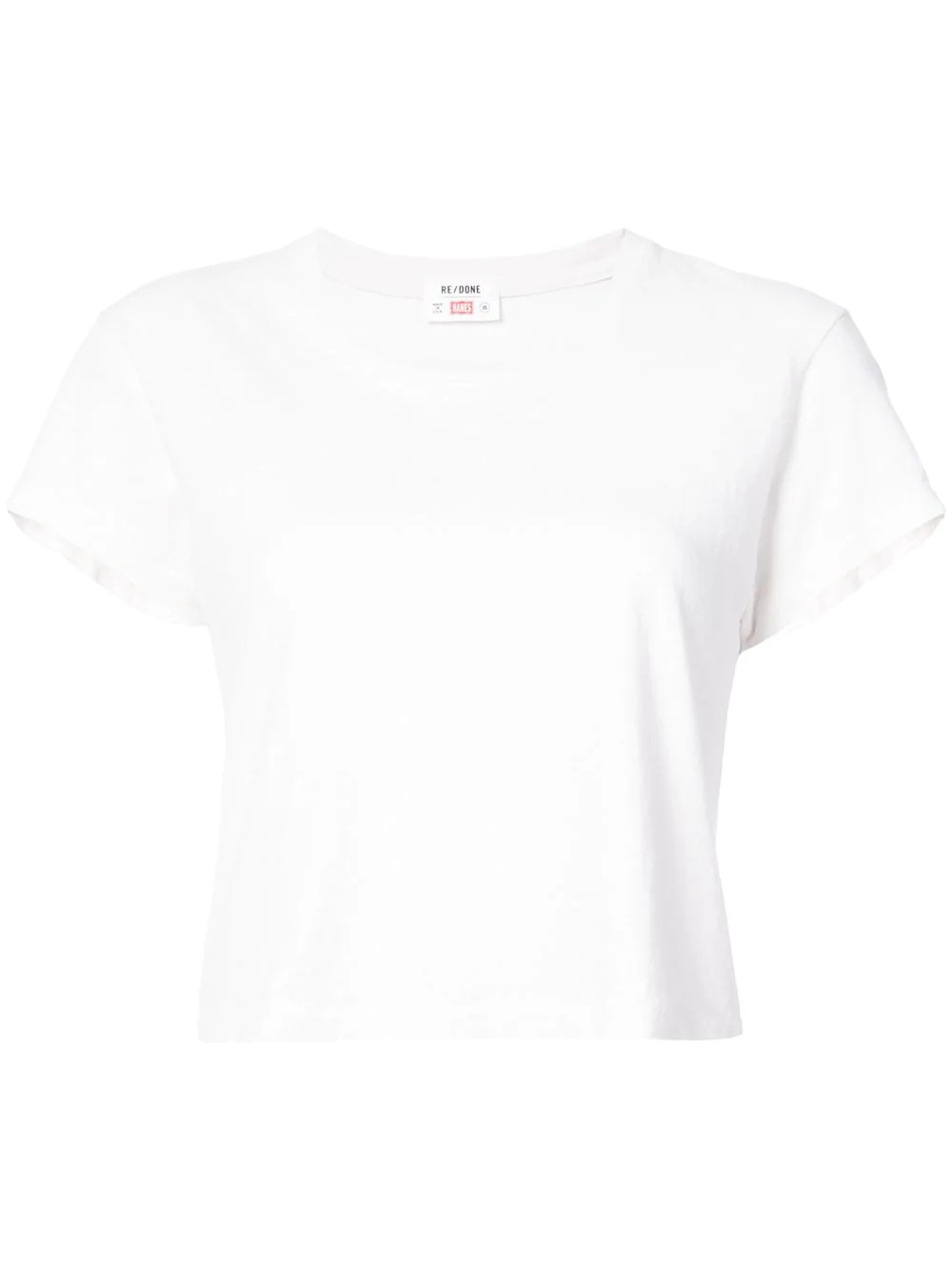 1950s Boxy T-shirt Highlights - White cotton 1950s boxy t-shirt from re/done featuring a round neck and short sleeves. Made in United States Composition Cotton 100% SIZE & FIT Model measurements Height 5 ft 10 in(1.78 m) Bust/Chest 31.49 in(80 cm) Hips 35.43 in(90 cm) Waist 25.98 in(66 cm) Measurement SLEEVE LENGTH 5.11 in(13 cm) Shoulder Width 14.96 in(38 cm) LENGTH 17.32 in(44 cm) BUST 68.89 in(175 cm) Washing instructions Machine Wash