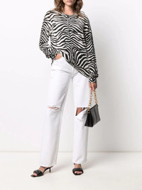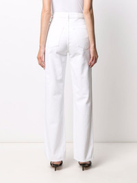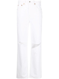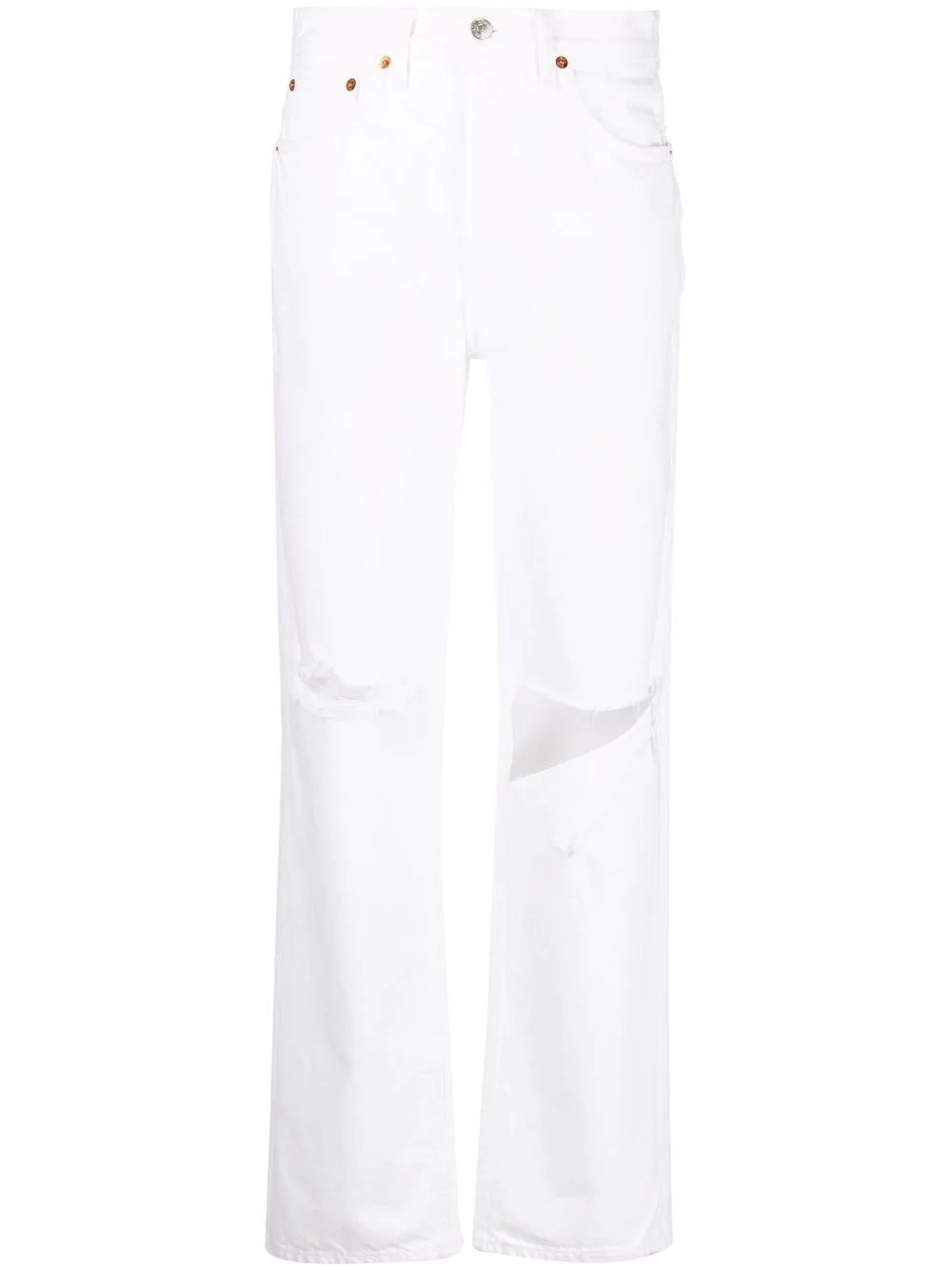 Pipe high-waist straight jeans Highlights - Bright white - Cotton - Ripped detailing - High waist - Belt loops - Front button and zip fastening - Classic five pockets Imported Composition Outer: Cotton 100% Lining: Polyester 65%, Cotton 35% SIZE & FIT Model measurements Height 5 ft 9 in(1.75 m) Bust/Chest 32.67 in(83 cm) Hips 36.22 in(92 cm) Waist 24.8 in(63 cm) Washing instructions Machine Wash