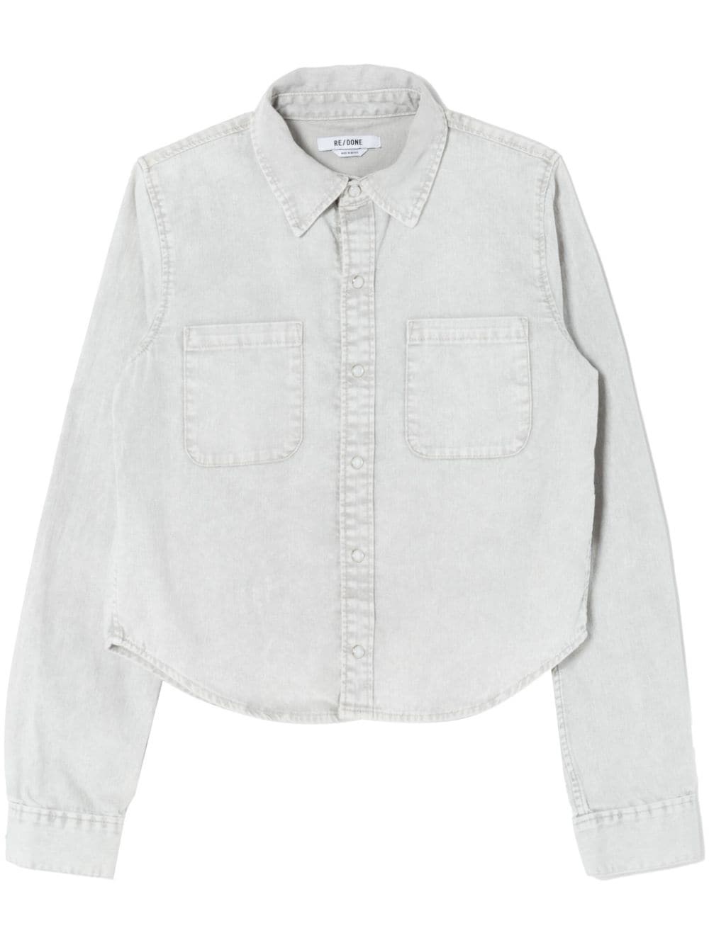 press-fastening denim shirt Highlights - Light blue - Cotton - Stonewashed - Classic collar - Press-stud fastening - Long sleeves - Two chest patch pockets - Curved hem Imported Composition Cotton 100% Washing instructions Dry Clean Only