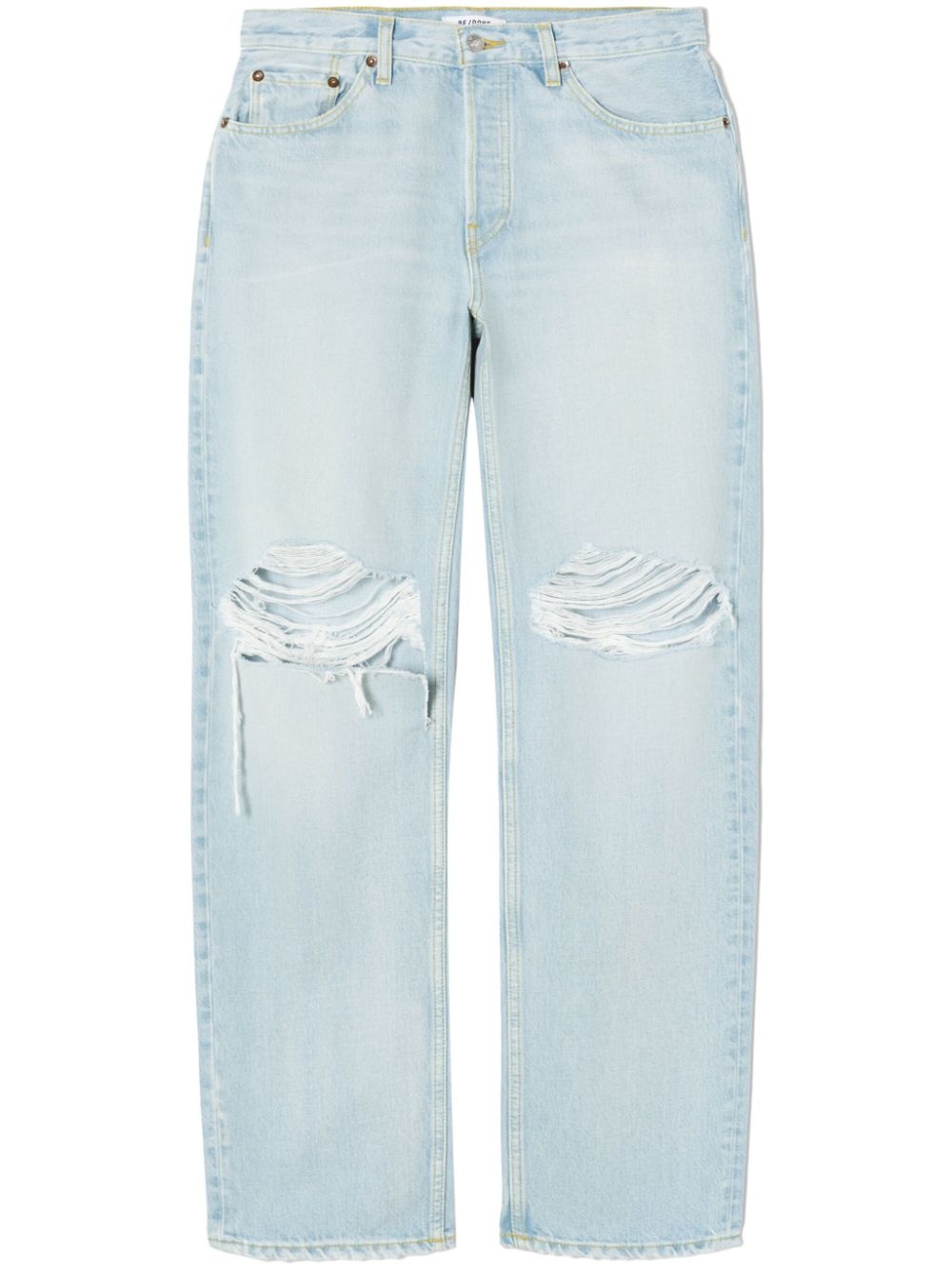 ripped boyfriend jeans Highlights - Light blue - Cotton - Denim - Distressed effect - Ripped detailing - Rivet detailing - Logo patch to the rear - Belt loops - Concealed fly and button fastening - Classic five pockets - Boyfriend cut Imported Composition Cotton 100% SIZE & FIT Measurement FRONT RISE 10.23 in(26 cm) INSIDE LEG 31.88 in(81 cm) HIPS 37.79 in(96 cm) WAIST 29.92 in(76 cm)