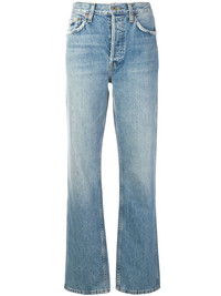 straight leg jeans Blue cotton straight leg jeans from RE/DONE featuring a high rise, a waistband with belt loops, a front button fastening, a five pocket design, a distressed finish, a branded rear patch and a regular length. All RE/DONE denim products are made of repurposed vintage Levi's jeans that are turned into modern, designer-style products. Made in United States Composition Cotton 100% SIZE & FIT Model measurements Height 5 ft 10 in(1.77 m) Bust/Chest 35.03 in(89 cm) Hips 35.03 in(89 cm) Waist 23.62 in(60 cm) Measurement INSIDE LEG 32.28 in(82 cm) FRONT RISE 10.62 in(27 cm) HIPS 34.64 in(88 cm) Washing instructions Machine Wash