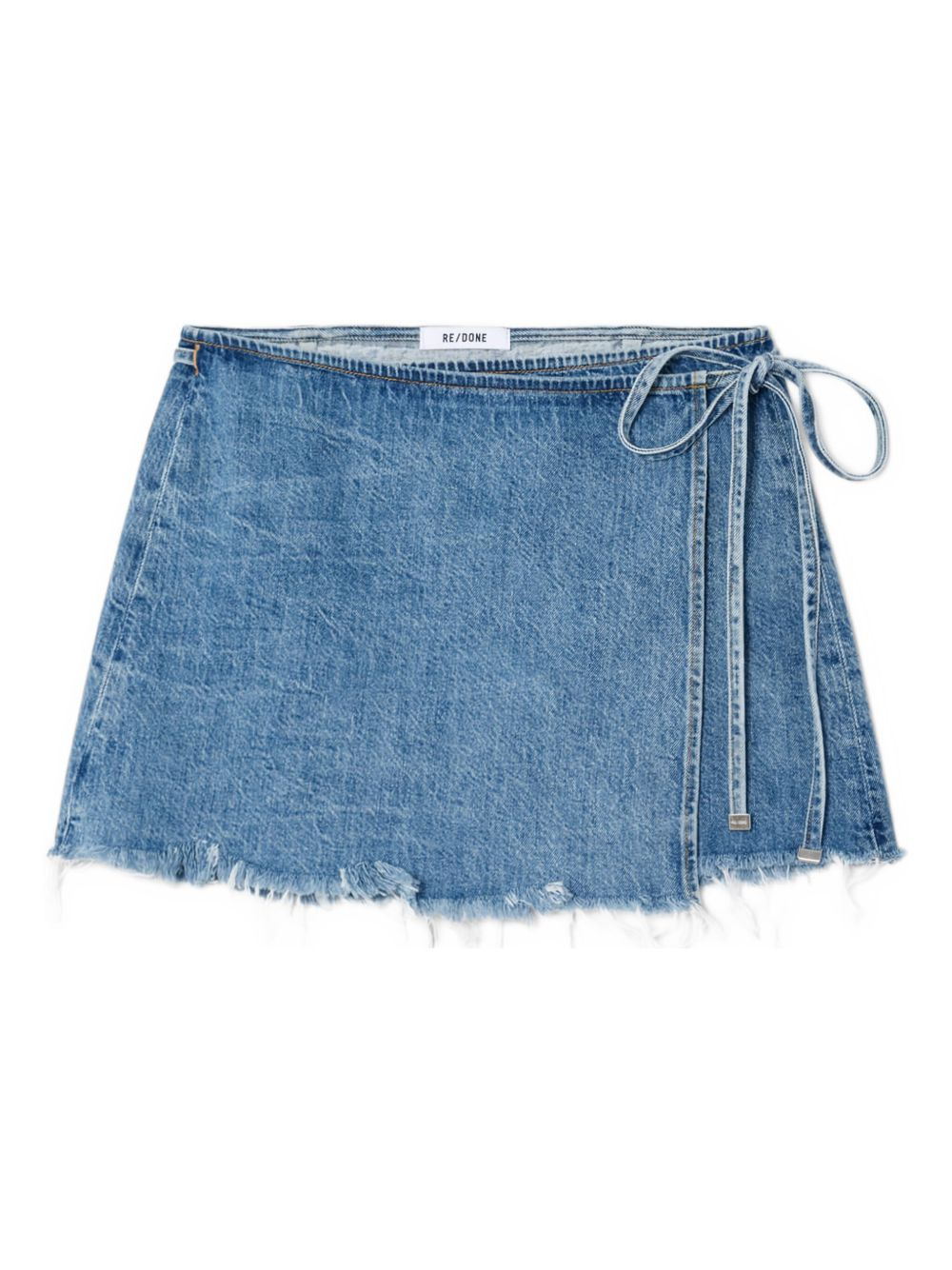 The Beach frayed wrap mini skirt Highlights - Ocean blue - Wrap style - Frayed hem - Tie fastening - A-line shape - Cotton blend Imported Composition Cotton 64%, Lyocell 36% Washing instructions Machine Wash