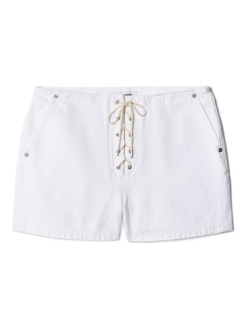The Boardwalk lace-up denim shorts Highlights - White - Lace-up front - Side pockets - Back pockets - Straight hem Imported Composition Cotton 100% Washing instructions Machine Wash