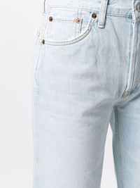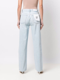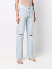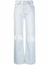 wide-leg distressed jeans blue cotton distressed finish wide leg front button and zip fastening mid-rise belt loops Imported Composition Outer: Cotton 100% Lining: Polyester 65%, Cotton 35% SIZE & FIT Model measurements Height 5 ft 10 in(1.78 m) Bust/Chest 33.07 in(84 cm) Hips 35.82 in(91 cm) Waist 25.98 in(66 cm) FittingInformation This piece fits true to size. We recommend you get your regular size Designed to be fitted at the waist and hips, loose over the leg Made with a mid-weight non-stretch fabric Washing instructions Machine Wash