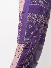 bandana-print straight trousers cotton purple bandana print high waist elasticated waistband straight leg drawstring hem When buying this unisex item, keep in mind that it is graded in standard men's sizing. Imported Composition Cotton 100% SIZE & FIT Model measurements Height 5 ft 10 in(1.79 m) Bust/Chest 31.49 in(80 cm) Hips 35.03 in(89 cm) Waist 24.4 in(62 cm) FittingInformation This piece is unisex. Please take care when selecting your size Designed for a loose fit for men and an oversized fit for women Made with a mid-weight non-stretch fabric Washing instructions Hand Wash