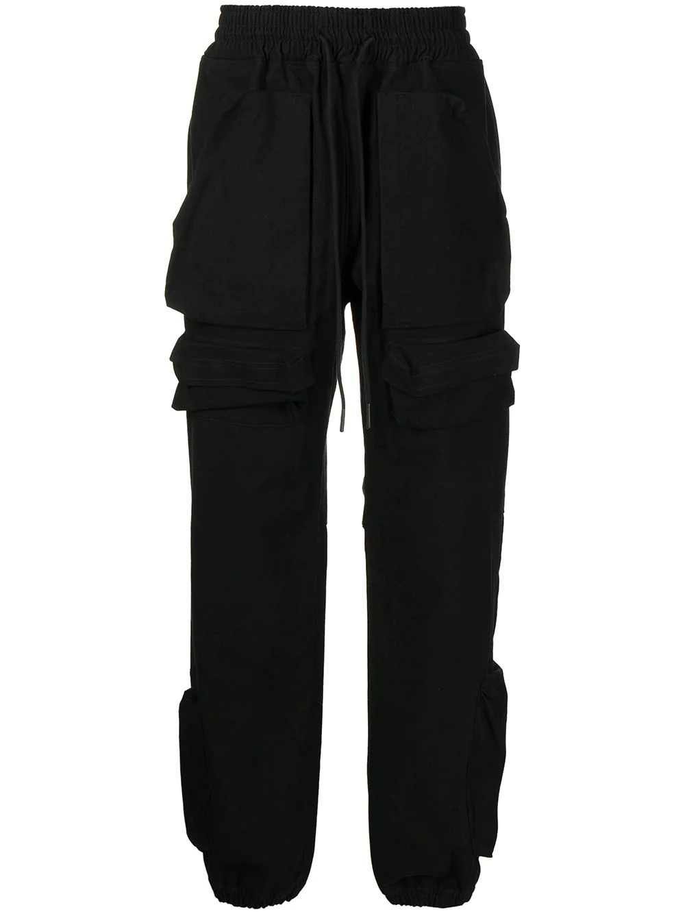 logo-print cargo pants black cotton logo print to the rear multiple cargo pockets elasticated waistband straight leg long length elasticated ankles Imported Composition Cotton 100% SIZE & FIT Model measurements Height 6 ft 0 in(1.84 m) Bust/Chest 35.43 in(90 cm) Hips 35.82 in(91 cm) Waist 28.74 in(73 cm) FittingInformation This piece fits true to size. We recommend you get your regular size Designed to be loose over the leg with a fitted waist and hem Made with a mid-weight fabric