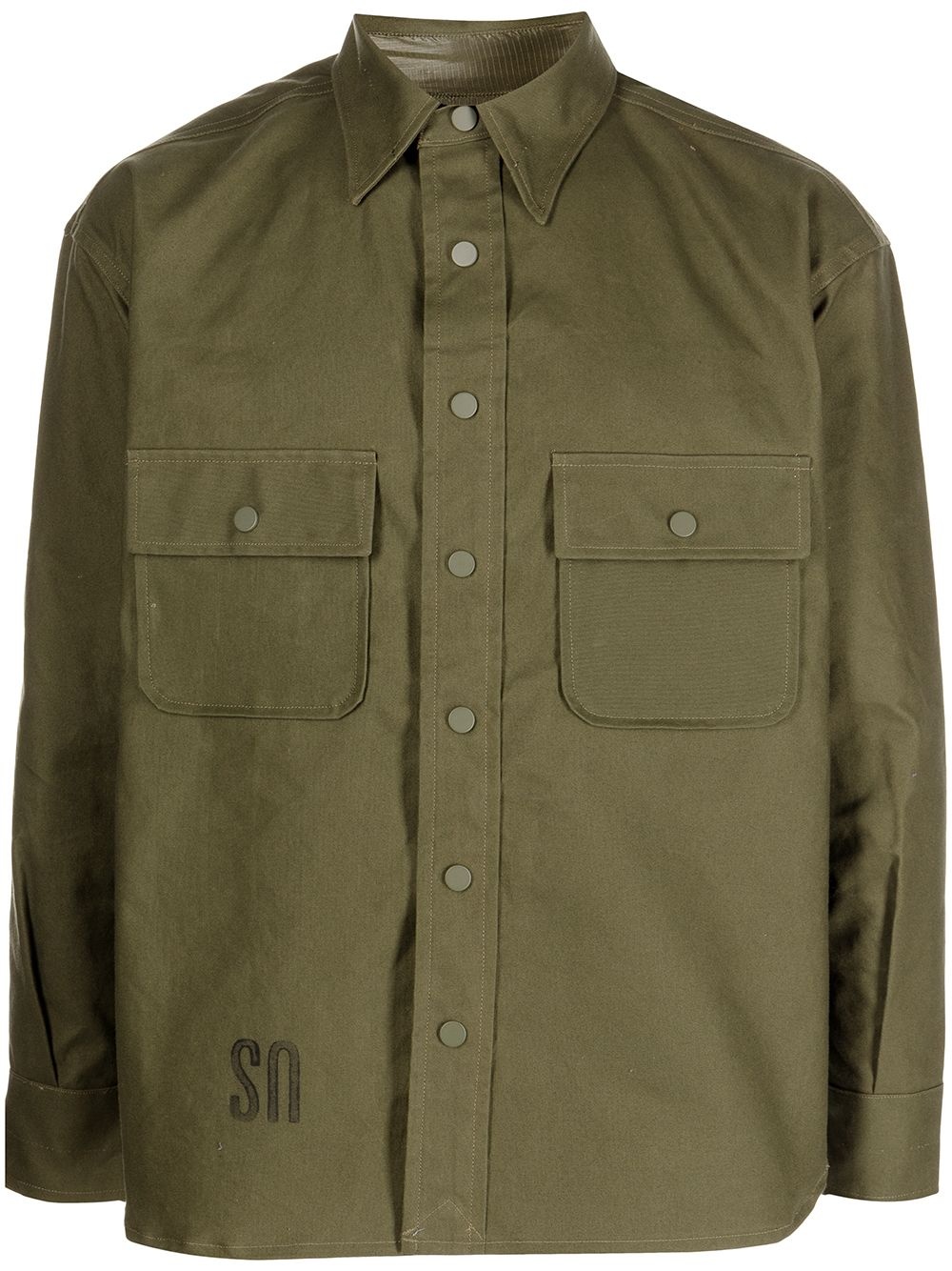 logo-print cargo shirt khaki green cotton logo print to the rear classic collar front button fastening long sleeves curved hem Imported Composition Body: Cotton 100% SIZE & FIT Model measurements Height 6 ft 2 in(1.88 m) Bust/Chest 38.18 in(97 cm) Hips 37 in(94 cm) Waist 29.92 in(76 cm) Washing instructions Dry Clean Only