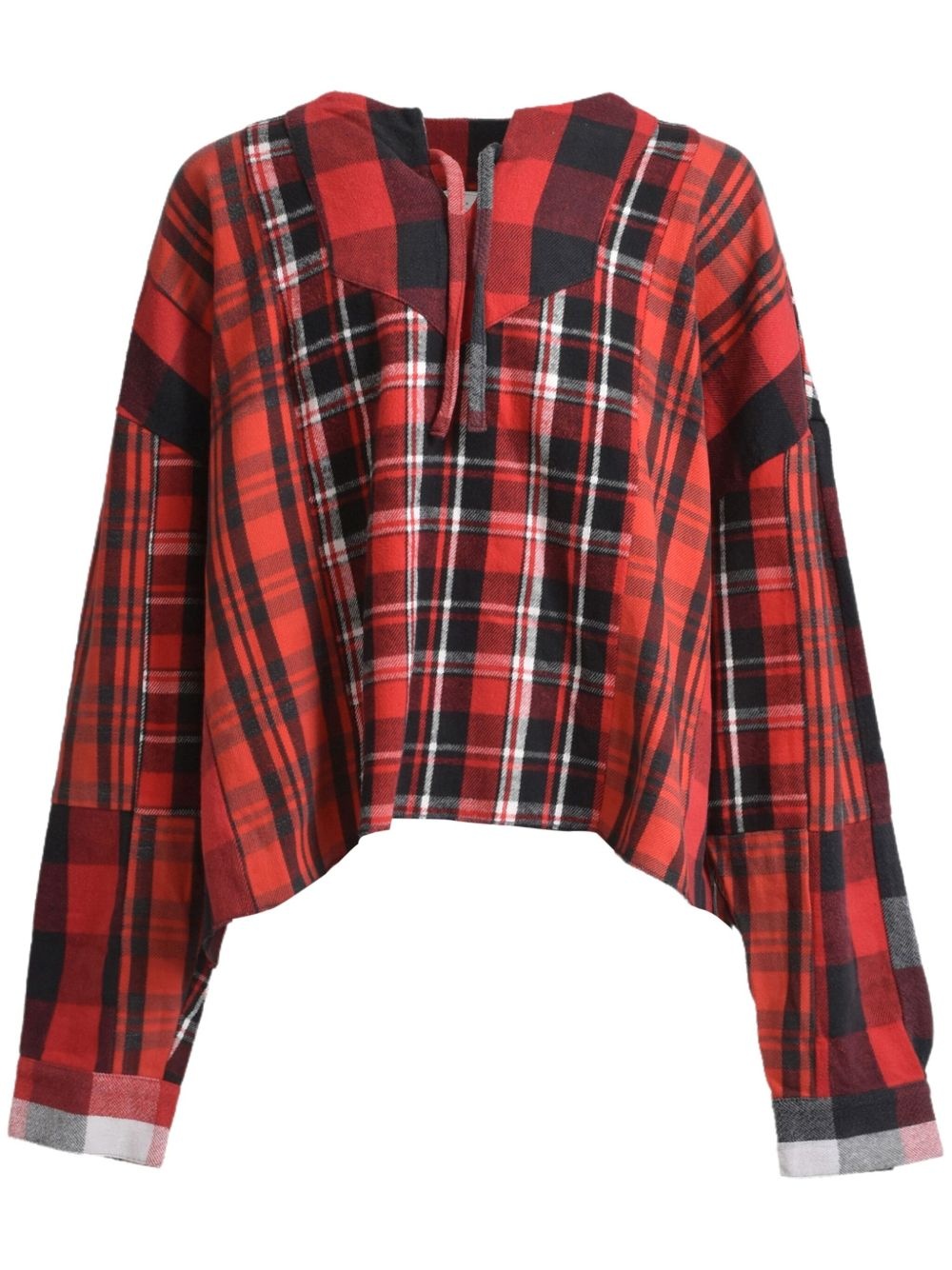 panelled shirt Highlights - Red - Check print - Panelled design - Drop shoulder - Long sleeves - Buttoned cuffs - Curved hem Imported Composition Fabric 100%