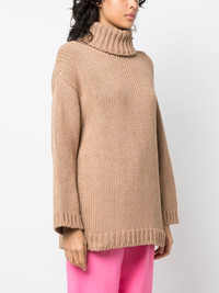 Desert chunky-knit jumper camel brown wool-cashmere blend chunky knit ribbed-knit edge roll neck open back rear tie fastening long sleeves straight hem Imported Composition Polyamide 36%, Wool 26%, Viscose 26%, Metallic Fibre 7%, Cashmere 5% SIZE & FIT Model measurements Height 5 ft 9 in(1.76 m) Bust/Chest 31.88 in(81 cm) Hips 35.43 in(90 cm) Waist 24.8 in(63 cm) Washing instructions Machine Wash