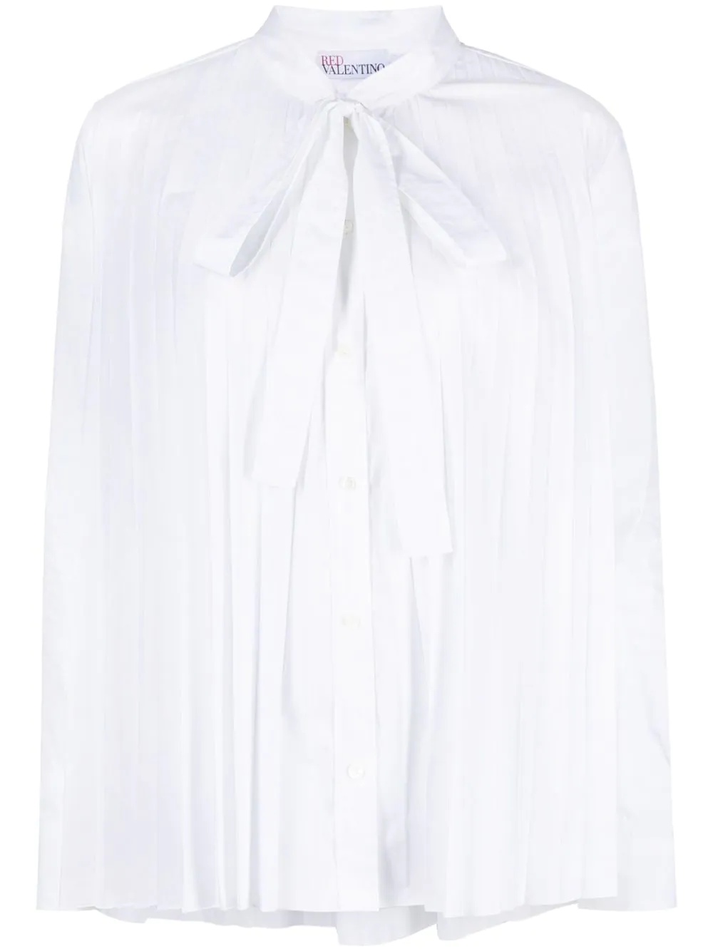 pleated long-sleeved blouse RED Valentino's romantic design style is showcased in the billowing pleated silhouette of this blouse. A pussy-bow collar adds to the piece's delicate feel. Imported Composition Cotton 65%, Polyester 35% SIZE & FIT Model measurements Height 5 ft 11 in(1.8 m) Bust/Chest 31.49 in(80 cm) Hips 35.82 in(91 cm) Waist 24.8 in(63 cm) FittingInformation This piece fits true to size. We recommend you get your regular size Cut for a loose fit Made with a mid-weight non-stretch fabric Washing instructions Dry Clean Only