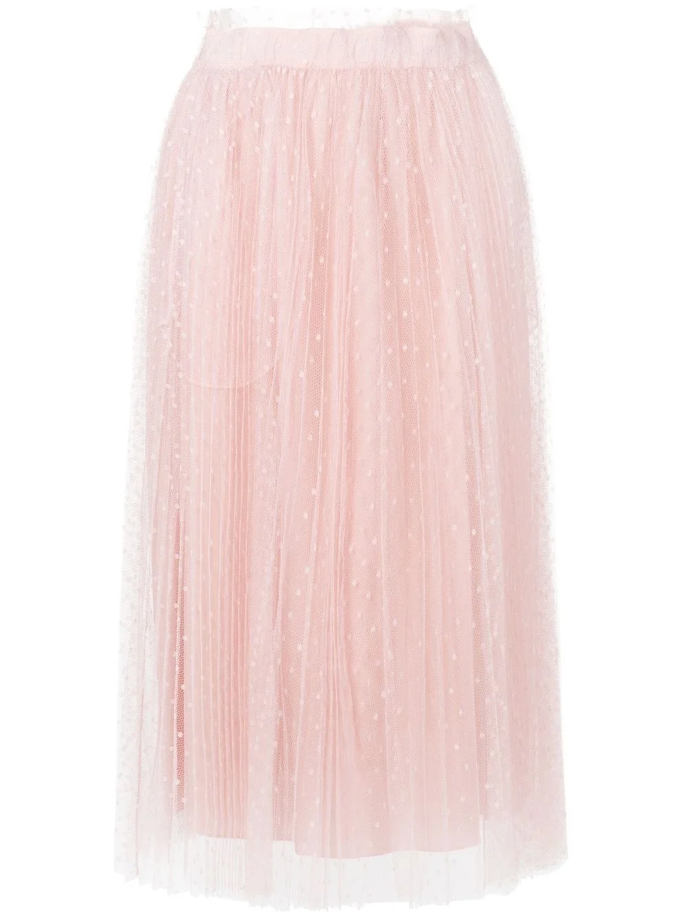 pleated tulle skirt Point d’esprit tulle is a fabric frequently revisited throughout Valentino collections, reflecting the house's romantic aesthetic. This pleated skirt from RED Valentino is made from the material, whilst a playful ruffled waistband adds to its cheerful look. Imported Composition Polyester 100% Washing instructions Machine Wash