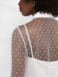point d'esprit long-sleeved blouse RED Valentino continues to inject its pieces with a sense of delicacy, as is evidenced by this lightweight blouse that features the recognisable sheer dotted motif, the point d'esprit mesh. Imported Composition Polyester 100% SIZE & FIT Model measurements Height 5 ft 10 in(1.78 m) Bust/Chest 31.49 in(80 cm) Hips 37 in(94 cm) Waist 23.62 in(60 cm) FittingInformation This piece fits true to size. We recommend you get your regular size Cut for a loose fit. Comes with a slim-fitting slip Made with a mid-weight non-stretch fabric Washing instructions Dry Clean Only
