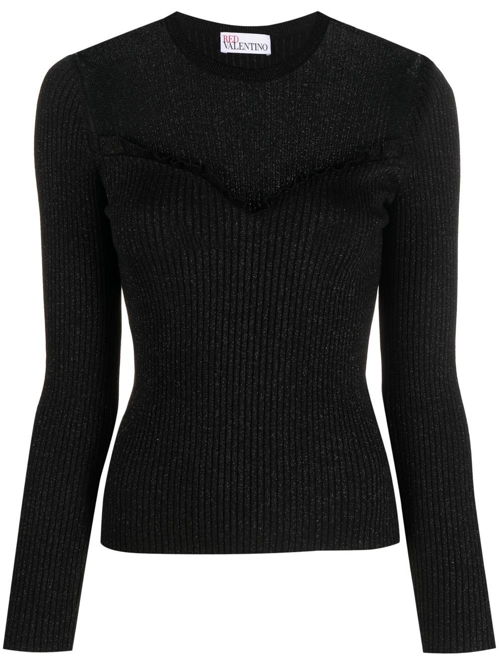 point d'esprit tulle knitted top point d'esprit tulle knitted top from RED Valentino featuring black, crew neck, long sleeves, metallic threading, point d'esprit tulle and ribbed knit. Imported Composition Outer: Polyamide 100%, Viscose 76%, Polyester 22%, Metallic Fibre 6% SIZE & FIT Model measurements Height 5 ft 10 in(1.78 m) Bust/Chest 31.49 in(80 cm) Hips 35.43 in(90 cm) Waist 24.4 in(62 cm) FittingInformation This piece fits true to size. We recommend you get your regular size Cut for a close fit Made with a mid-weight fabric Washing instructions Hand Wash