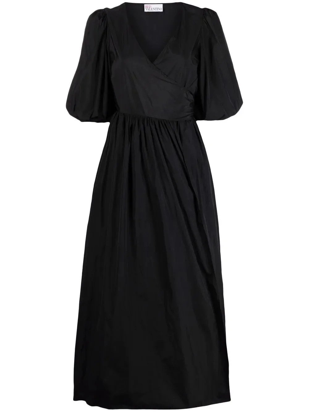 V-neck midi dress Crafted in a tonal style, RED Valentino's romantic aesthetic is exhibited with this mid-length wrap dress. Featuring a fitted waist and flared skirt, the voluminous design is enhanced with short puff sleeves. Imported Composition Outer: Polyester 100% Lining: Acetate 64%, Polyester 36% Washing instructions Dry Clean Only