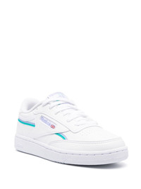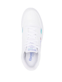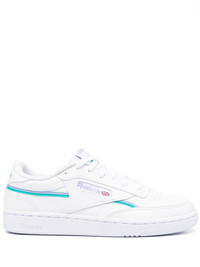 Club C 85 low-top sneakers Highlights - Cloud white/teal blue/lilac - Calf leather - Panelled design - Logo patch at the tongue - Logo print to the side - Round toe - Perforated toebox - Front lace-up fastening - Branded heel counter - Flat rubber sole Imported Composition Lining: Fabric 100% Sole: Rubber 100% Outer: Calf Leather 100% SIZE & FIT Measurement HEEL 0.98 in(2.5 cm) Sole height 0.78 in(2 cm)