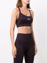 jacquard-logo sports bra eggplant purple jacquard logo motif rear criss-cross straps round neck sleeveless cropped stretch-design Imported Composition Polyamide 90%, Spandex/Elastane 10% SIZE & FIT Model measurements Height 5 ft 10 in(1.78 m) Bust/Chest 33.46 in(85 cm) Hips 36.22 in(92 cm) Waist 23.22 in(59 cm) FittingInformation This piece fits small – you might want to get one size up Cut for a close fit Made with a mid-weight stretch fabric Washing instructions Machine Wash