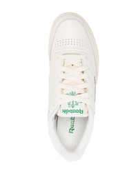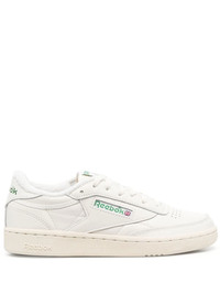 logo-print low-top sneakers The Reebok Club C 85 "Vintage Chalk Green" sneakers are reminiscent of retro styles: they're crafted from beige leather and detailed with a logo patch at the tongue and sides. Underneath, a tonal rubber sole completes the design. Highlights - Chalk white - Calf leather trim - Perforated toebox - Logo print to the side - Logo print to the rear - Logo-print tongue - Front lace-up fastening - Branded insole - Round toe - Flat rubber sole Imported Composition Sole: Rubber 100% Lining: Fabric 100% Outer: Calf Leather 100% SIZE & FIT Measurement HEEL 1.18 in(3 cm) Sole height 0.98 in(2.5 cm)
