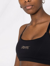 logo-print sports bra With a thigh stretch design, this sports bra is a collaboration from Reebok and Victoria Beckham. Offering support, this top shows a logo print on the front. Imported Composition Polyamide 90%, Spandex/Elastane 9%, Polyester 1% SIZE & FIT Model measurements Height 5 ft 10 in(1.78 m) Bust/Chest 31.49 in(80 cm) Hips 37 in(94 cm) Waist 23.62 in(60 cm) FittingInformation This piece fits true to size. We recommend you get your regular size Cut for a slim fit Made with a mid-weight stretch fabric Washing instructions Machine Wash