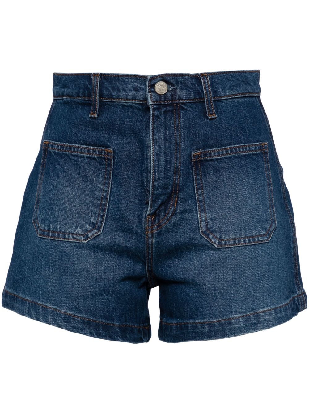 Alyssa denim shorts Highlights - Anguilla blue - Organic cotton blend - Washed denim - Front button and zip fastening - Belt loops - Whiskering effect - Contrast stitching - Two front patch pockets - Two rear patch pockets - High-rise - Thigh-length Imported Composition Organic Cotton 64%, TENCEL™ Lyocell (LENZING) 35%, Recycled Lycra 1%