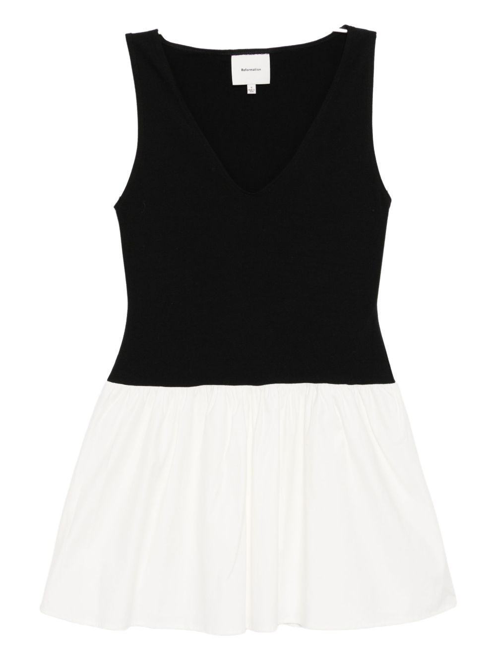 Alyssa dress black V-neck sleeveless A-line skirt Made in United States Composition Outer: Organic Cotton 88%, Spandex/Elastane 12% Organic Cotton 98%, Spandex/Elastane 2% SIZE & FIT Model measurements Height 5 ft 9 in(1.76 m) Bust/Chest 32.28 in(82 cm) Hips 35.82 in(91 cm) Waist 25.59 in(65 cm) FittingInformation Designed for a slim fit that sits just away from the body offering a close yet comfortable fit Made from a midweight stretch fabric, this piece offers elasticity and flexibility when worn Washing instructions Dry Clean Only