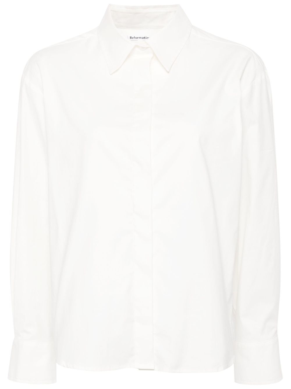 Andy organic-cotton shirt Highlights - White - Stretch organic cotton - Straight-point collar - Front button fastening - Drop shoulder - Long sleeves - Buttoned cuffs - Curved hem Imported Composition Organic Cotton 98%, Spandex/Elastane 2% SIZE & FIT Model measurements Height 5 ft 10 in(1.78 m) Bust/Chest 32.67 in(83 cm) Hips 37 in(94 cm) Waist 25.59 in(65 cm) FittingInformation Designed for an oversized fit, offering additional room throughout Made from a midweight stretch fabric, this piece offers elasticity and flexibility when worn This piece fits true to size – take your usual size