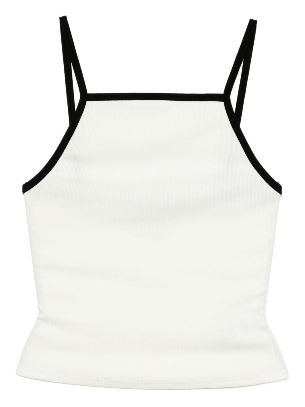 Arnie tank top Highlights - White - Sleeveless - Thin shoulder straps - Straight hem Made in United States Composition Organic Cotton 97%, Spandex/Elastane 3% SIZE & FIT Model measurements Height 5 ft 10 in(1.79 m) Bust/Chest 29.52 in(75 cm) Hips 35.03 in(89 cm) Waist 24.01 in(61 cm) FittingInformation Designed for a close fit throughout Made from a lightweight stretch fabric, this piece offers elasticity and flexibility when worn Washing instructions Dry Clean Only
