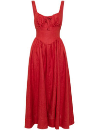 Balia linen midi dress Highlights - Red - Linen - Lightweight - Corset style - Smocking details - Adjustable shoulder straps - Slip pockets to the sides - Scoop neck Imported Composition Lining: Rayon 100% Outer: Linen/Flax 100% SIZE & FIT Model measurements Height 5 ft 10 in(1.77 m) Bust/Chest 30.7 in(78 cm) Hips 35.03 in(89 cm) Waist 23.62 in(60 cm) FittingInformation Designed for a close fit at the chest and waist with a loose fit at the hip Made from a midweight non-stretch fabric This piece fits true to size – take your usual size