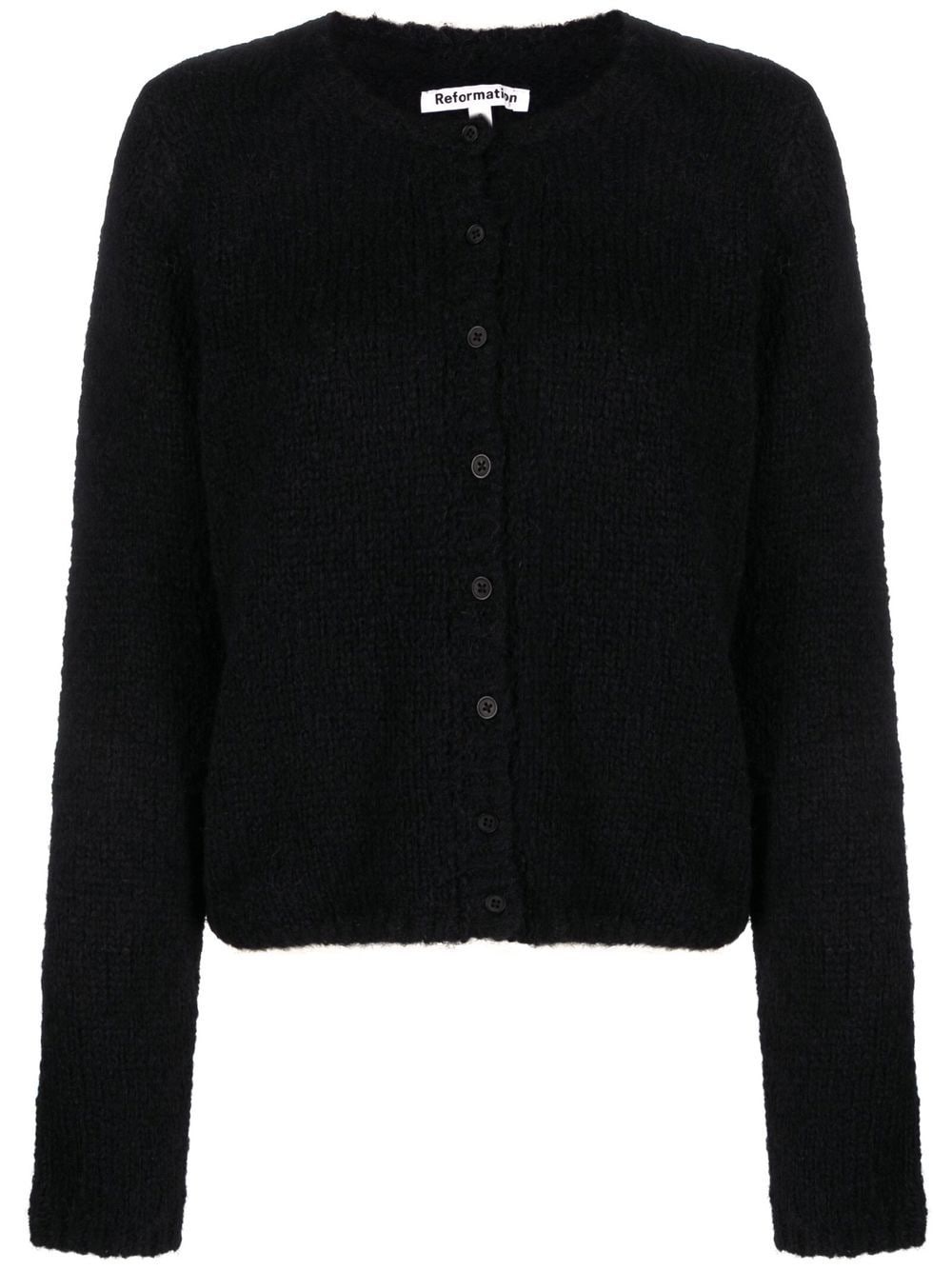 Clara crew neck cardigan Highlights - Black - Alpaca wool-blend - Knitted construction - Band collar - Front button fastening - Long sleeves Imported Composition Alpaca Wool 56%, Merino 32%, Nylon 12% SIZE & FIT Model measurements Height 5 ft 10 in(1.78 m) Bust/Chest 31.49 in(80 cm) Hips 35.03 in(89 cm) Waist 23.62 in(60 cm) FittingInformation This piece fits true to size. We recommend you get your regular size Cut for a relaxed fit Made with a mid-weight fabric Washing instructions Hand Wash