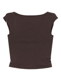 Darra top Highlights - Dark brown - Boat neck - Open back Imported Composition Organic Cotton 88%, Spandex/Elastane 12% SIZE & FIT Model measurements Height 5 ft 9 in(1.76 m) Bust/Chest 32.28 in(82 cm) Hips 35.82 in(91 cm) Waist 25.59 in(65 cm) FittingInformation Designed for a close fit throughout Made from a midweight stretch fabric, this piece offers elasticity and flexibility when worn Washing instructions Machine Wash