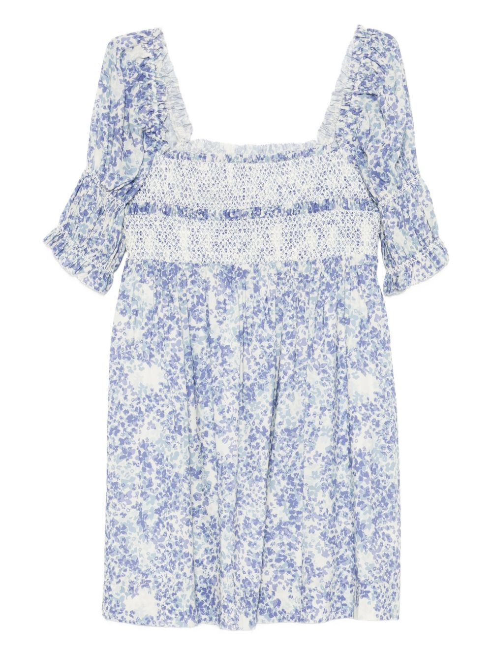 DIONE dress Highlights - Cornflower blue - Short puff sleeves - Elasticated waistband Imported Composition Outer: Organic Cotton 52%, EcoVero Viscose (LENZING) 48% Lining: Nylon 100% SIZE & FIT Model measurements Height 5 ft 10 in(1.79 m) Bust/Chest 29.52 in(75 cm) Hips 35.03 in(89 cm) Waist 24.01 in(61 cm) FittingInformation Designed for a close fit at the chest and waist with a loose fit at the hip Made from a lightweight non-stretch fabric Washing instructions Machine Wash
