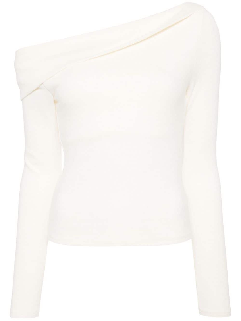 Elio off-shoulder top Highlights - Ivory white - Tencel™ lyocell-organic cotton blend - Stretch-design - Draped detailing - Off-shoulder - Long sleeves - Straight hem Made in United States Composition TENCEL™ Lyocell (LENZING) 67%, Organic Cotton 29%, Spandex/Elastane 4% SIZE & FIT Model measurements Height 5 ft 10 in(1.78 m) Bust/Chest 32.67 in(83 cm) Hips 37 in(94 cm) Waist 25.59 in(65 cm) FittingInformation Designed for a close fit throughout Made with a lightweight knit, this piece offers some stretch This piece fits true to size – take your usual size