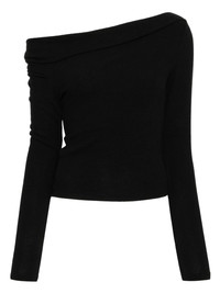 Elio top Highlights - Black - Asymmetric neck - Straight hem Made in United States Composition TENCEL™ Lyocell (LENZING) 67%, Organic Cotton 29%, Spandex/Elastane 4% SIZE & FIT Model measurements Height 5 ft 9 in(1.76 m) Bust/Chest 31.1 in(79 cm) Hips 35.03 in(89 cm) Waist 24.4 in(62 cm) FittingInformation Designed for a slim fit that sits just away from the body offering a close yet comfortable fit Made from a midweight stretch fabric, this piece offers elasticity and flexibility when worn