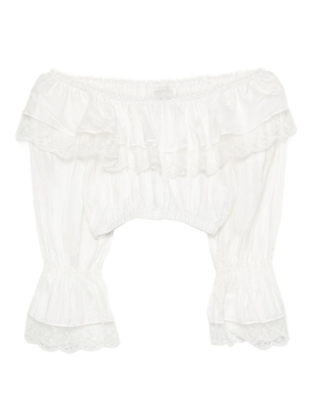 Elise top Highlights - White - Ribbed hem - Lace detailing Imported Composition Rayon 53%, Polyester 32%, Nylon 15% SIZE & FIT Model measurements Height 5 ft 10 in(1.77 m) Bust/Chest 30.31 in(77 cm) Hips 34.25 in(87 cm) Waist 25.19 in(64 cm) FittingInformation Designed for a relaxed fit, this piece allows for comfort and movement when worn The elasticated waist allows for a comfortable fit Made from a lightweight non-stretch fabric Washing instructions Machine Wash