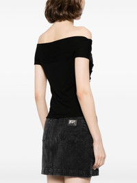 Ezlynn off-shoulder top Highlights - Black - Tencel™ lyocell blend - Lightweight jersey - Ruched detailing - Off-shoulder - V-neck - Straight hem Made in United States Composition TENCEL™ Lyocell (LENZING) 88%, Spandex/Elastane 12% SIZE & FIT Model measurements Height 5 ft 10 in(1.78 m) Bust/Chest 32.67 in(83 cm) Hips 37 in(94 cm) Waist 25.59 in(65 cm) FittingInformation Designed for a close fit throughout Made from a lightweight stretch fabric, this piece offers elasticity and flexibility when worn This piece fits true to size – take your usual size