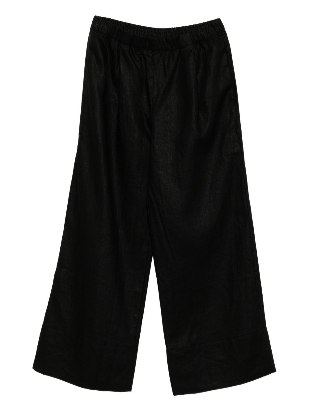 Fernando linen trousers Highlights - Black - Elasticated waistband - Two side seam pockets - Straight hem Imported Composition Linen/Flax 100% SIZE & FIT Model measurements Height 5 ft 9 in(1.76 m) Bust/Chest 31.1 in(79 cm) Hips 35.03 in(89 cm) Waist 24.4 in(62 cm) FittingInformation Designed with a wide-leg cut, these trousers allow for a close fit at the waist and offer a loose and roomy fit over the leg The elasticated waist allows for a comfortable fit Made from a midweight non-stretch fabric Washing instructions Machine Wash