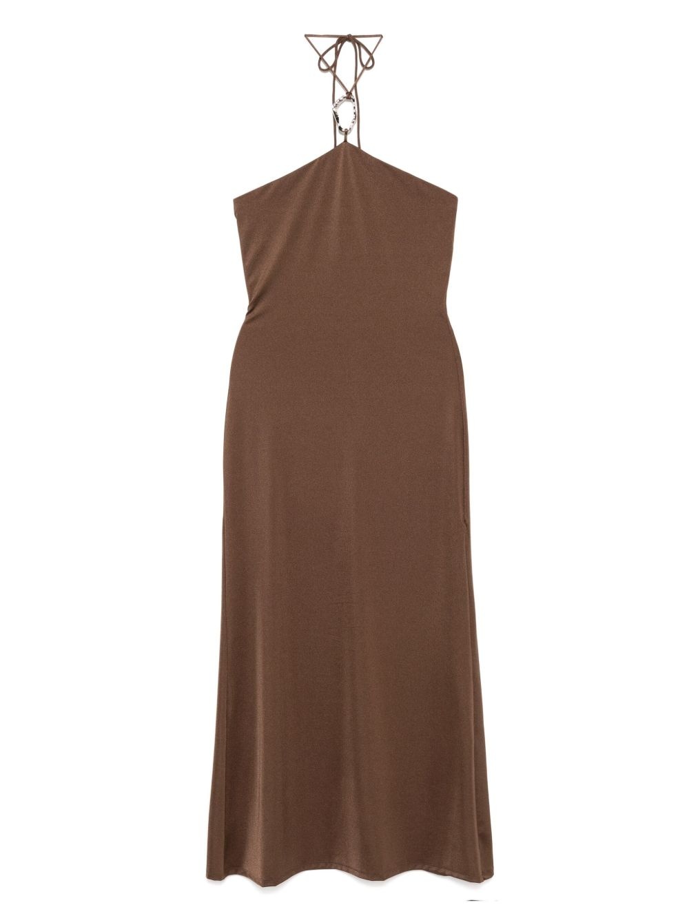 Grayson dress Highlights - Chocolate brown - Halterneck tie fastening - Silver-tone hardware Imported Composition Nylon 84%, Spandex/Elastane 16% SIZE & FIT Model measurements Height 5 ft 9 in(1.76 m) Bust/Chest 31.1 in(79 cm) Hips 35.03 in(89 cm) Waist 24.4 in(62 cm) FittingInformation Designed for a slim fit that sits just away from the body offering a close yet comfortable fit Made from a midweight stretch fabric, this piece offers elasticity and flexibility when worn