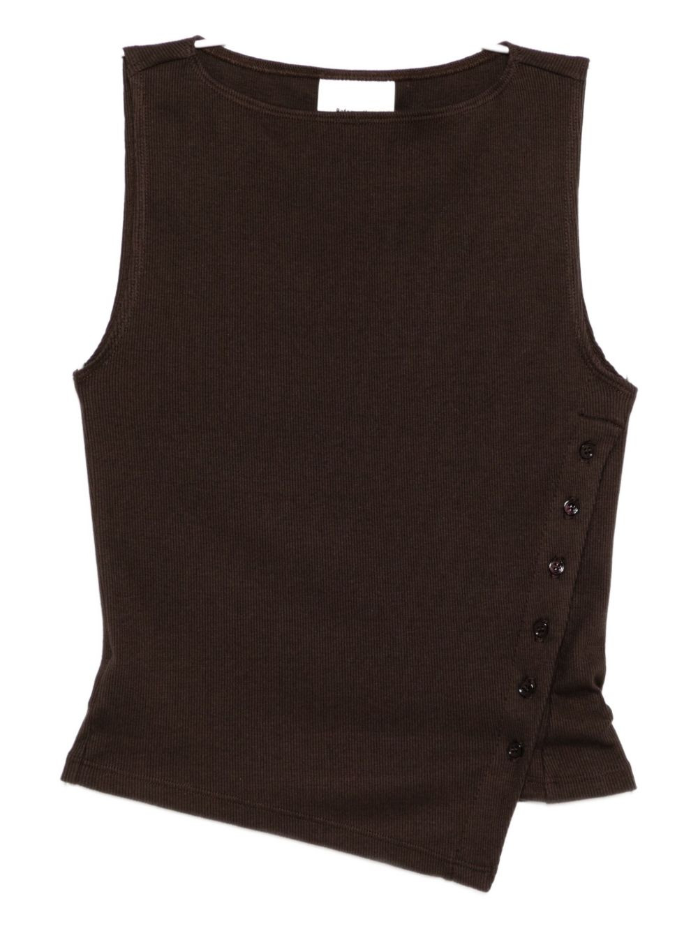 Hudson tank Highlights - Dark brown - Side button fastening - Boat neck Imported Composition Organic Cotton 97%, Spandex/Elastane 3% SIZE & FIT Model measurements Height 5 ft 10 in(1.77 m) Bust/Chest 30.31 in(77 cm) Hips 36.22 in(92 cm) Waist 24.8 in(63 cm) FittingInformation Designed for a close fit throughout Made from a midweight stretch fabric, this piece offers elasticity and flexibility when worn Washing instructions Machine Wash