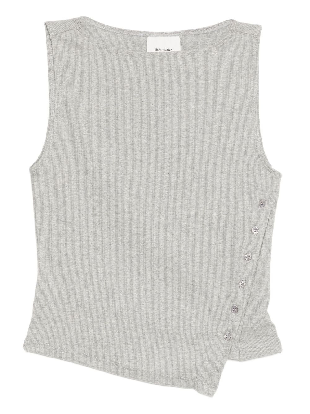 Hudson top Highlights - Light grey - Side button fastening - Asymmetric hem Imported Composition Organic Cotton 97%, Spandex/Elastane 3% SIZE & FIT Model measurements Height 5 ft 10 in(1.77 m) Bust/Chest 30.31 in(77 cm) Hips 36.22 in(92 cm) Waist 24.8 in(63 cm) FittingInformation Designed for a close fit throughout Made from a midweight stretch fabric, this piece offers elasticity and flexibility when worn This piece fits close in all sizes – take your usual size Washing instructions Machine Wash