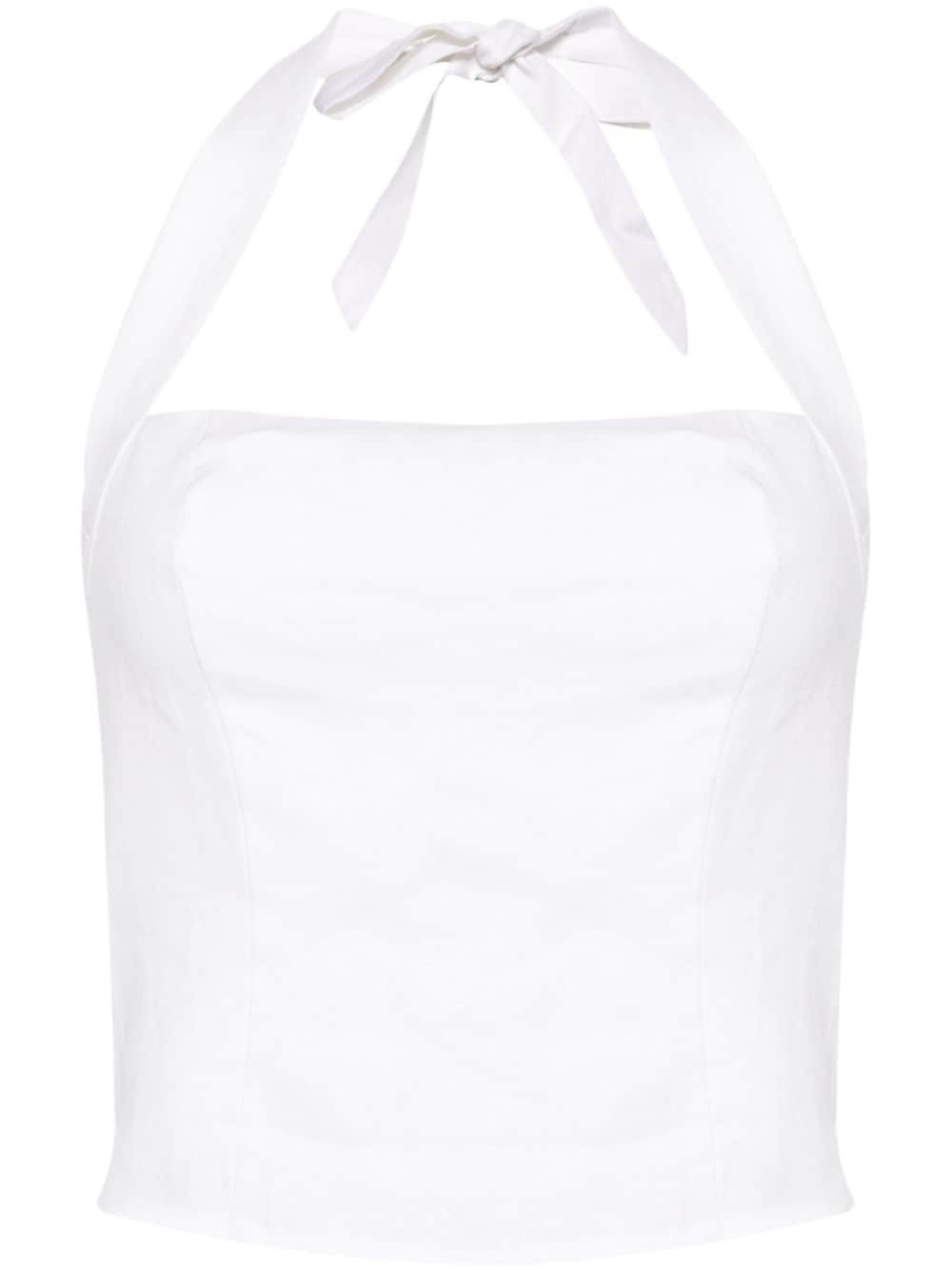 Malika linen top Highlights - White - Linen/flax - Halterneck tie fastening - Square neck - Smocked panel - Straight hem - Cropped Imported Composition Outer: Linen/Flax 100% Lining: Polyester 100% SIZE & FIT Model measurements Height 5 ft 9 in(1.76 m) Bust/Chest 29.13 in(74 cm) Hips 33.07 in(84 cm) Waist 22.83 in(58 cm) FittingInformation Designed for a slim fit that sits just away from the body offering a close yet comfortable fit The adjustable shoulder straps allow for a preferred fit when worn Made from a lightweight non-stretch fabric This piece fits true to size – take your usual size