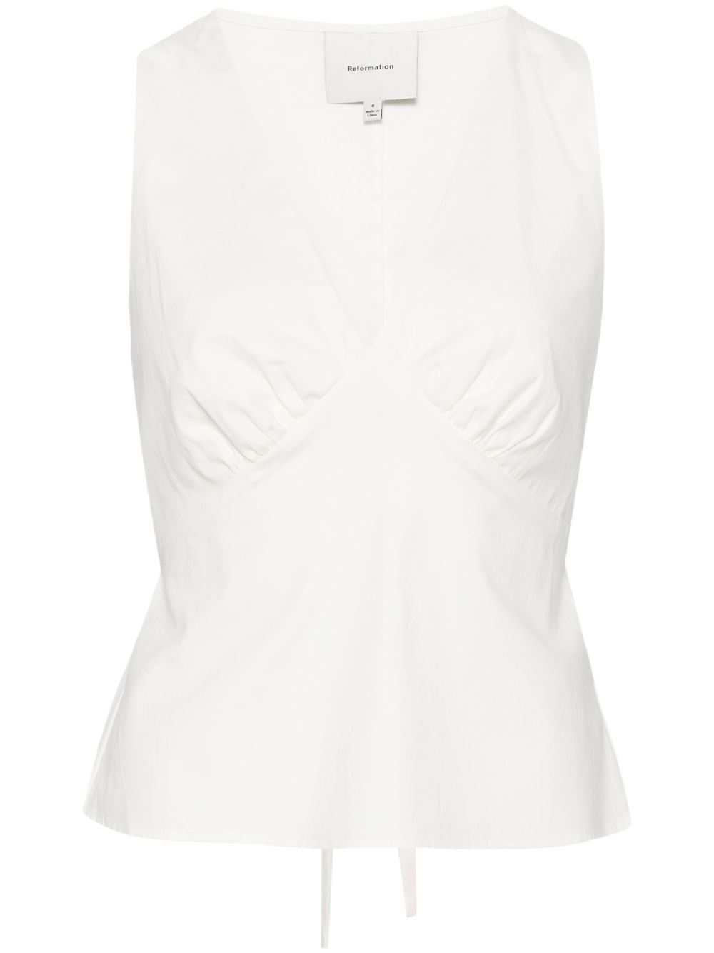 Meg top Highlights - White - Organic cotton blend - Stretch-design - Plunging v-neck - Sleeveless - Ruched bodice - Adjustable waist strap Imported Composition Organic Cotton 98%, Spandex/Elastane 2%