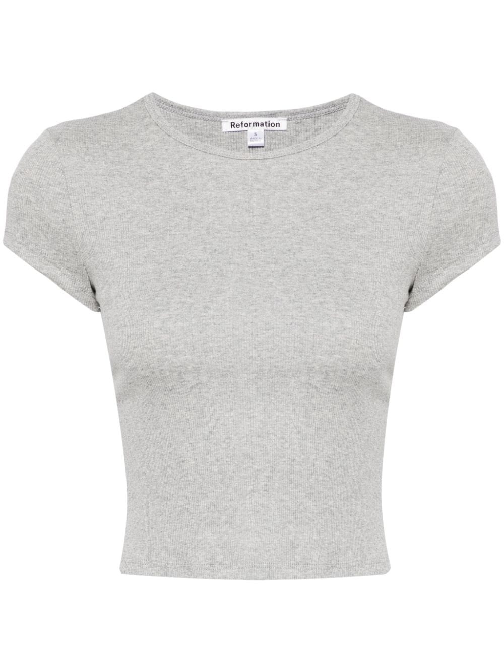 Muse organic-cotton T-shirt Highlights - Light grey - Stretch organic cotton - Jersey texture - Melange effect - Crew neck - Cap sleeves - Straight hem Imported Composition Organic Cotton 97%, Spandex/Elastane 3% SIZE & FIT Model measurements Height 5 ft 10 in(1.78 m) Bust/Chest 32.67 in(83 cm) Hips 37 in(94 cm) Waist 25.59 in(65 cm) FittingInformation Designed for a slim fit that sits just away from the body offering a close yet comfortable fit Cropped in length Made from a lightweight stretch fabric, this piece offers elasticity and flexibility when worn This piece fits true to size – take your usual size