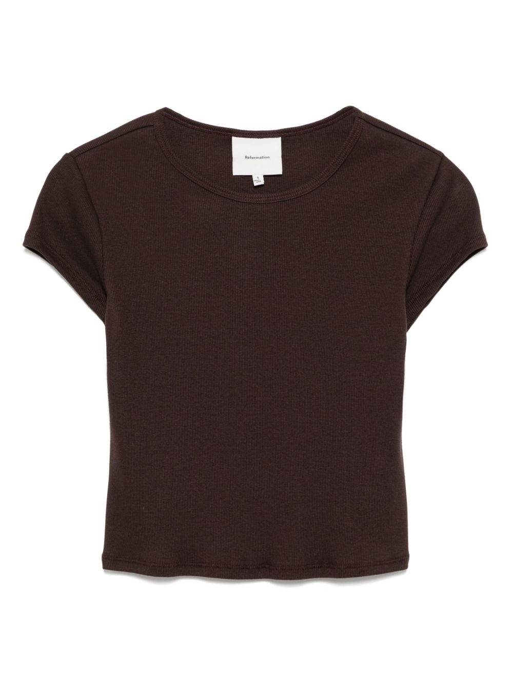 Muse t-shirt Highlights - Dark brown - Straight hem - Short sleeves Made in United States Composition Organic Cotton 97%, Spandex/Elastane 3% SIZE & FIT Model measurements Height 5 ft 9 in(1.76 m) Bust/Chest 31.1 in(79 cm) Hips 35.03 in(89 cm) Waist 24.4 in(62 cm) FittingInformation Designed for a slim fit that sits just away from the body offering a close yet comfortable fit Made from a midweight stretch fabric, this piece offers elasticity and flexibility when worn