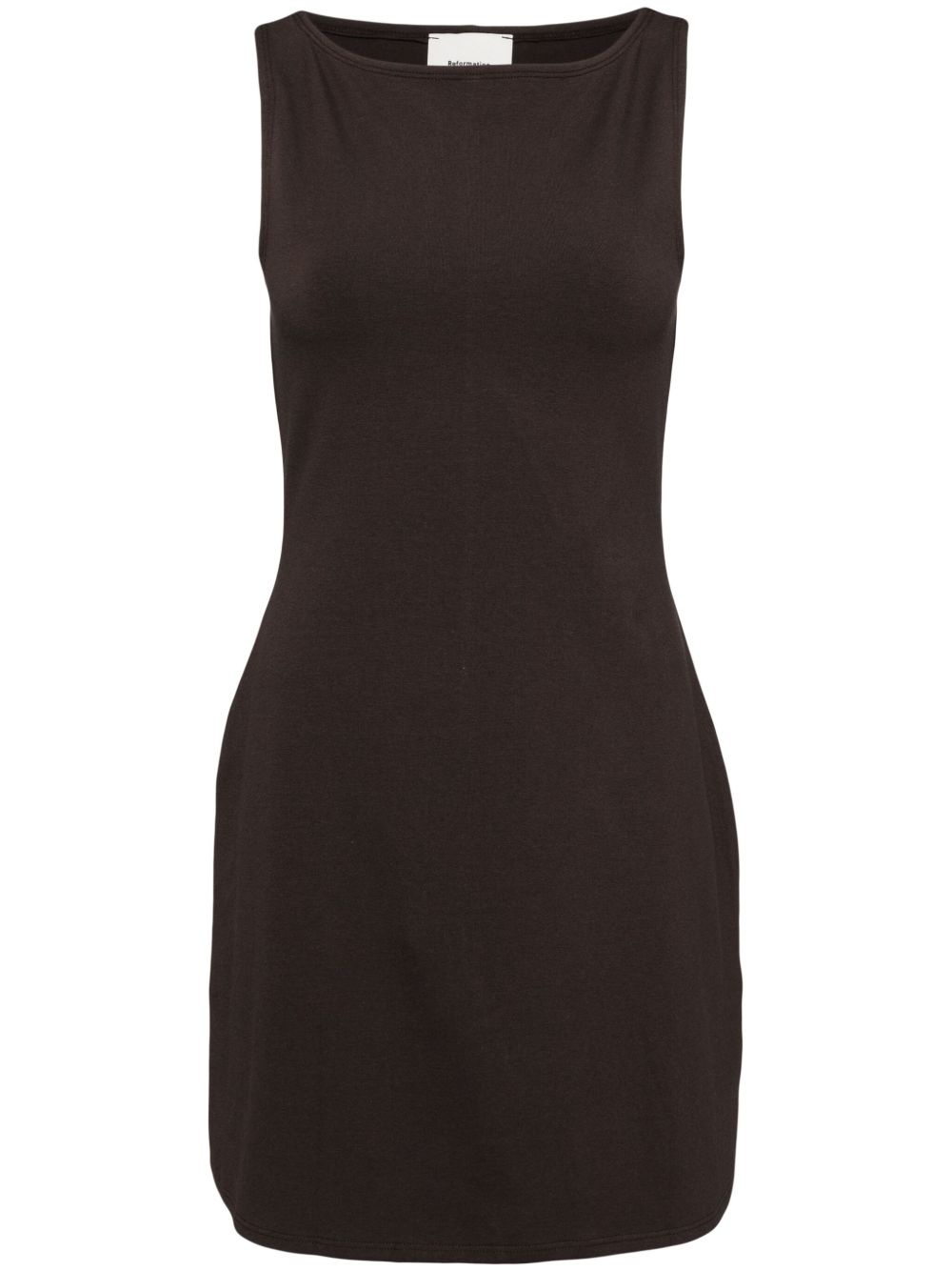 Nataly dress Highlights - Mole brown - Organic cotton blend - Stretch-jersey - Fine ribbed - Boat neck - Sleeveless - Pull-on style - Thigh-length Imported Composition Organic Cotton 88%, Spandex/Elastane 12%