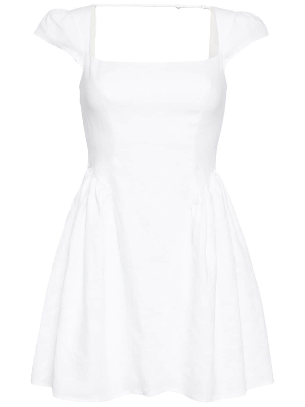 Oaklyn linen dress Highlights - White - Linen/cotton - Square neck - Short sleeves - Open back - Rear zip fastening - Straight hem Imported Composition Outer: Linen/Flax 100% Lining: Cotton 100% SIZE & FIT Model measurements Height 5 ft 9 in(1.76 m) Bust/Chest 31.1 in(79 cm) Hips 35.03 in(89 cm) Waist 24.4 in(62 cm) FittingInformation Designed for a close fit at the chest and waist with a loose fit at the hip The dart stitching adds structure and a closer fit in the torso of this piece Made from a midweight non-stretch fabric This piece fits small – take one size up Washing instructions Machine Wash