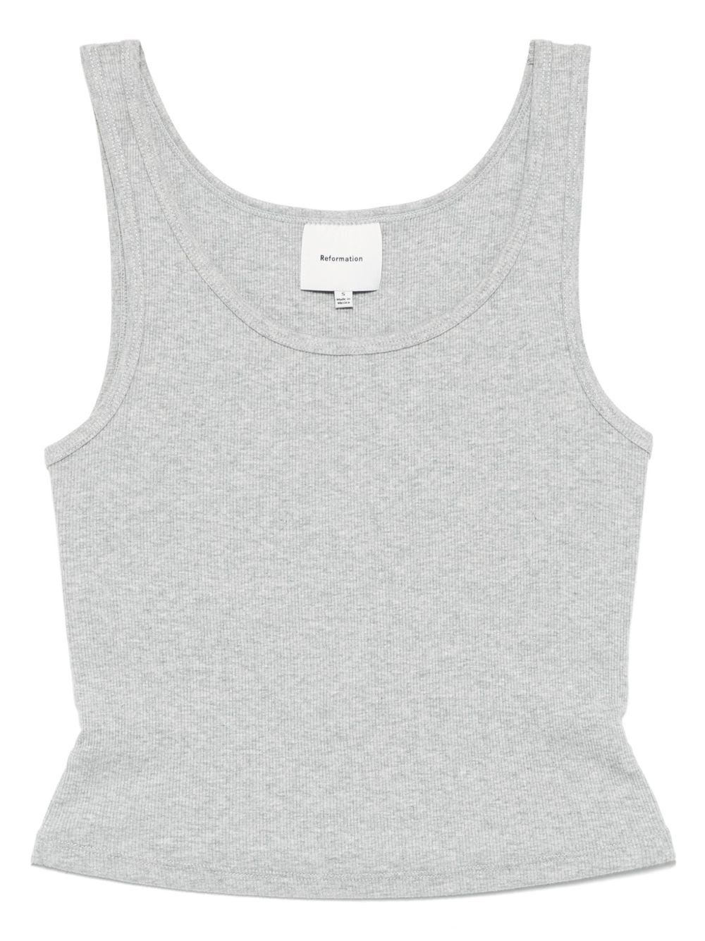 Olive tank top Highlights - Light grey - Sleeveless - Straight hem Imported Composition Organic Cotton 97%, Spandex/Elastane 3% SIZE & FIT Model measurements Height 5 ft 9 in(1.76 m) Bust/Chest 31.1 in(79 cm) Hips 35.03 in(89 cm) Waist 24.4 in(62 cm) FittingInformation Designed for a slim fit that sits just away from the body offering a close yet comfortable fit Made from a lightweight stretch fabric, this piece offers elasticity and flexibility when worn