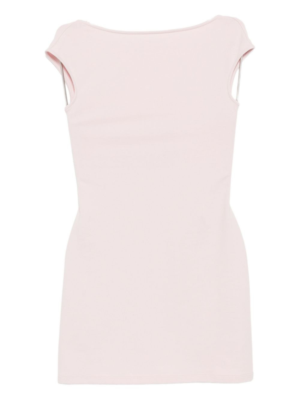 Soleil dress Highlights - Light pink - Open back - Short sleeves Imported Composition Organic Cotton 88%, Spandex/Elastane 12% SIZE & FIT Model measurements Height 5 ft 9 in(1.76 m) Bust/Chest 32.28 in(82 cm) Hips 35.82 in(91 cm) Waist 25.59 in(65 cm) FittingInformation Designed for a slim fit that sits just away from the body offering a close yet comfortable fit Made from a midweight stretch fabric, this piece offers elasticity and flexibility when worn
