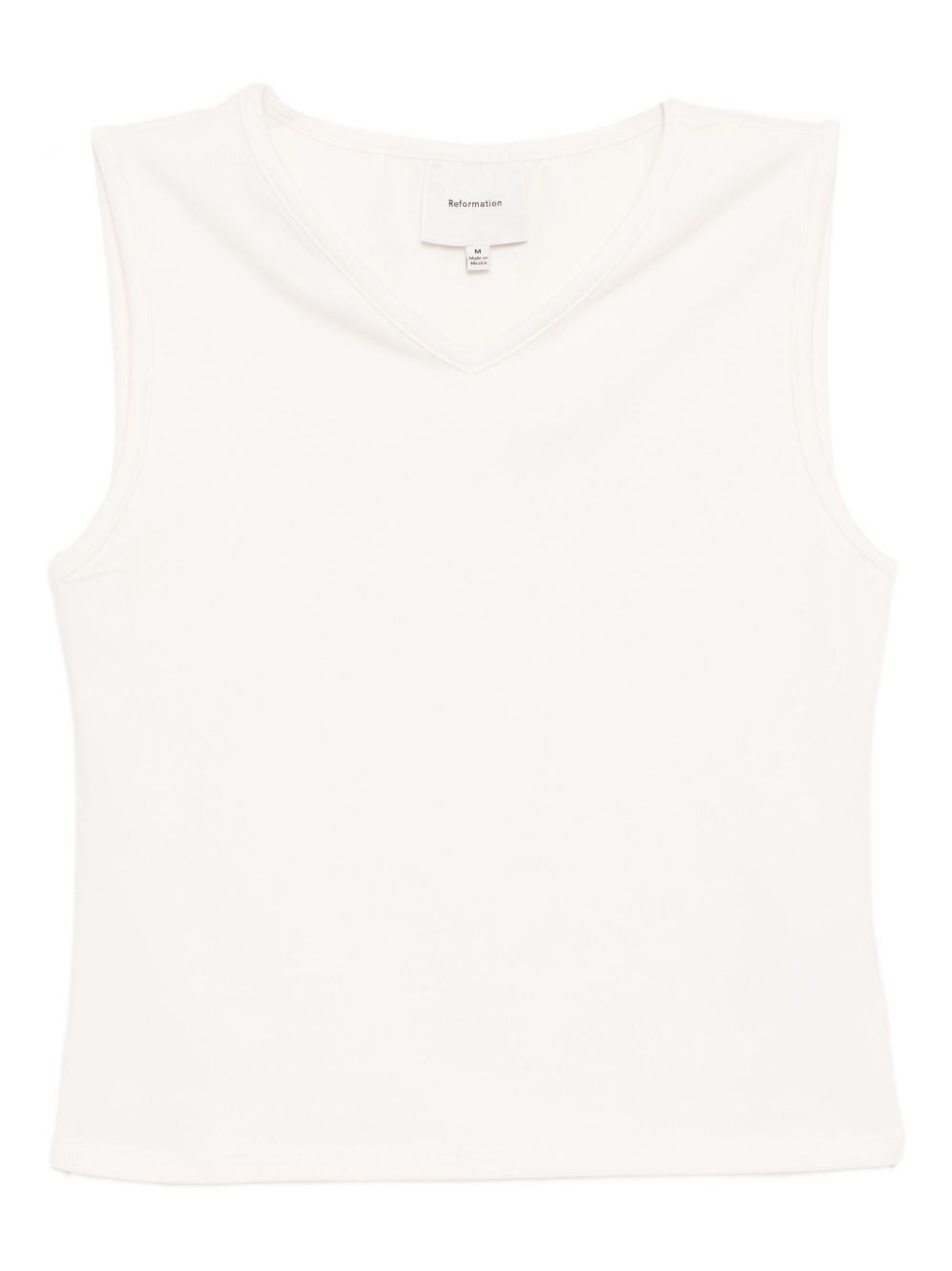 Wren vest Highlights - Ivory - Sleeveless - V-neck Imported Composition Organic Cotton 88%, Spandex/Elastane 12% SIZE & FIT Model measurements Height 5 ft 10 in(1.77 m) Bust/Chest 30.31 in(77 cm) Hips 34.25 in(87 cm) Waist 25.19 in(64 cm) FittingInformation Designed for a slim fit that sits just away from the body offering a close yet comfortable fit Made from a lightweight stretch fabric, this piece offers elasticity and flexibility when worn Washing instructions Machine Wash