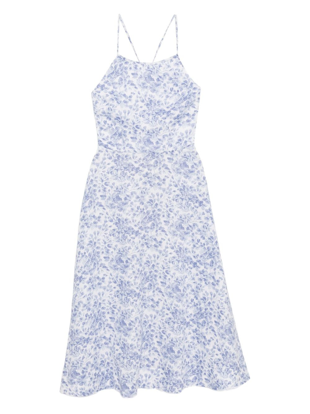 Yuliy linen dress Highlights - Cornflower blue - Rear tie fastening - Drawstring neck - Rear elasticated waistband Imported Composition Outer: Linen/Flax 100% Lining: Rayon 100% SIZE & FIT Model measurements Height 5 ft 10 in(1.77 m) Bust/Chest 30.31 in(77 cm) Hips 34.25 in(87 cm) Waist 25.19 in(64 cm) FittingInformation Designed for a close fit at the chest and waist with a loose fit at the hip The adjustable shoulder straps allow for a preferred fit when worn Made from a midweight non-stretch fabric