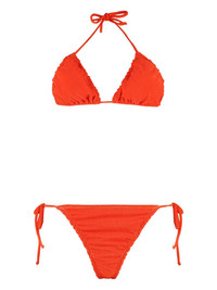 Concetta frilled bikini set Highlights - Bright orange - Frilled trim - Adjustable ties - Contrasting lining - Side tie bottoms - Be mindful to try on swimwear over your own garments. Made in Italy Composition Polyamide 85%, Elastane 15%