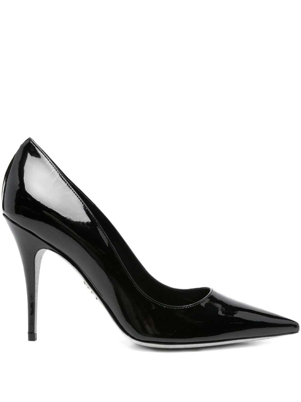 100mm pointed-toe stiletto heeled pumps Highlights - Black - Patent leather - Stiletto heel - Pointed toe - High heel Made in Italy Composition Sole: Glitter 100% Outer: Patent Calf Leather 100% Lining: Calf Leather 100% SIZE & FIT Measurement HEEL 3.93 in(10 cm)